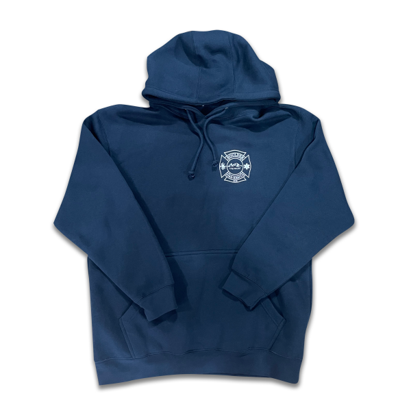 Lane 7 Navy Sweatshirt 70% Cotton 30% Polyester White print front left chest and back